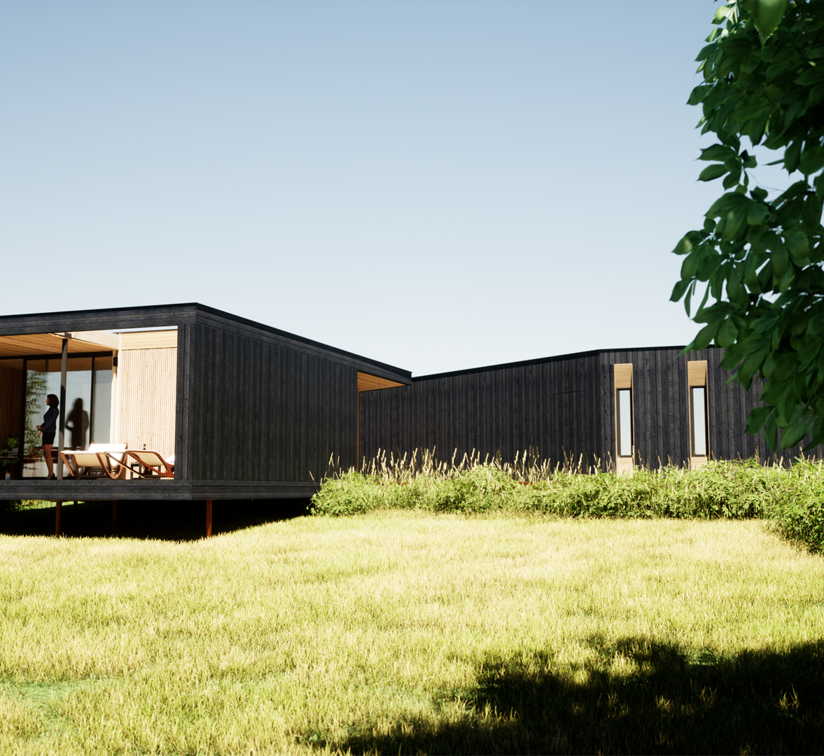 Extension de la maison Ki No KanCréation d'une extension accueillant atelier professionnel et studio indépendant Etude de projetSystème constructif identique à la Maison Ki No Kanenveloppe travaux* 200 à 220k€